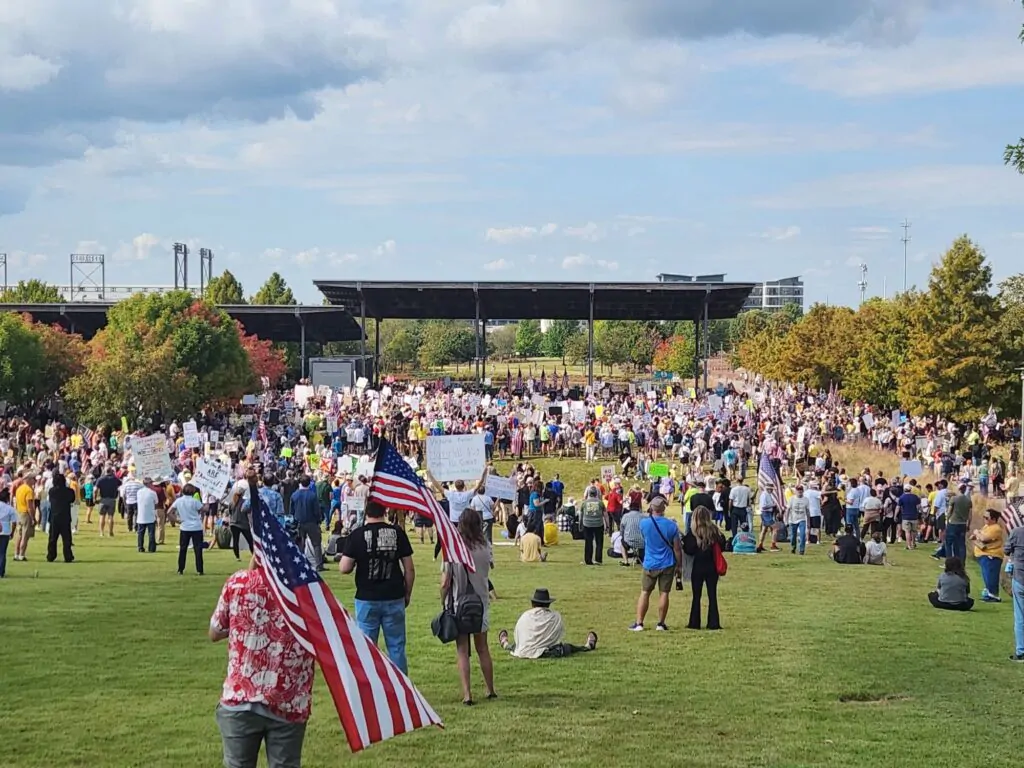 Birmingham’s No Kings Event, held in Railroad Park, featured speeches made by prominent local leaders, including former U.S. Senator Doug Jones, D-Alabama, and Reverend Julie Conrady of Birmingham’s United Universalist Church.